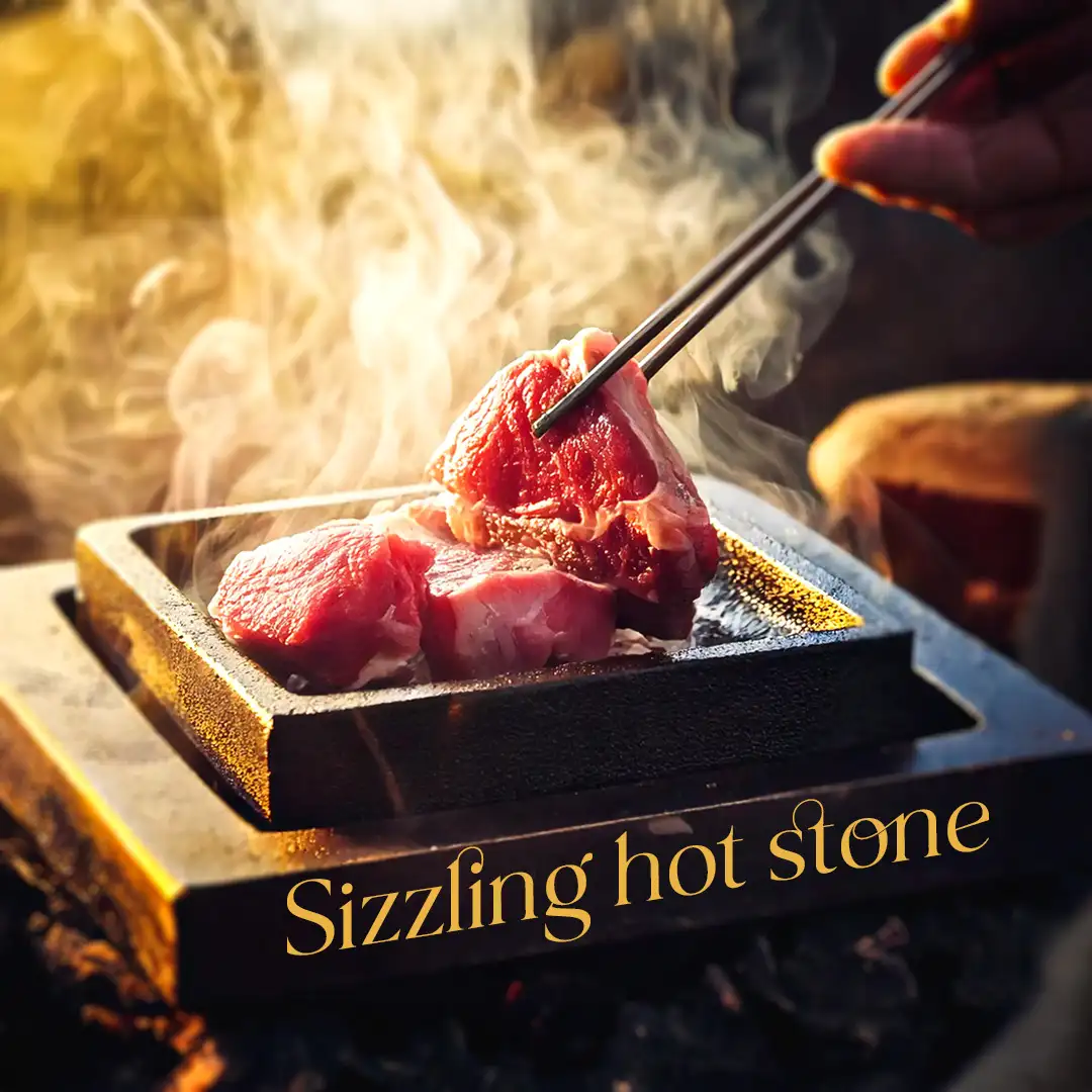 Cook your choice of fresh salmon, king prawns, or tender lamb on a sizzling volcanic stone, sealing in rich flavors for a truly interactive and delicious dining experience.